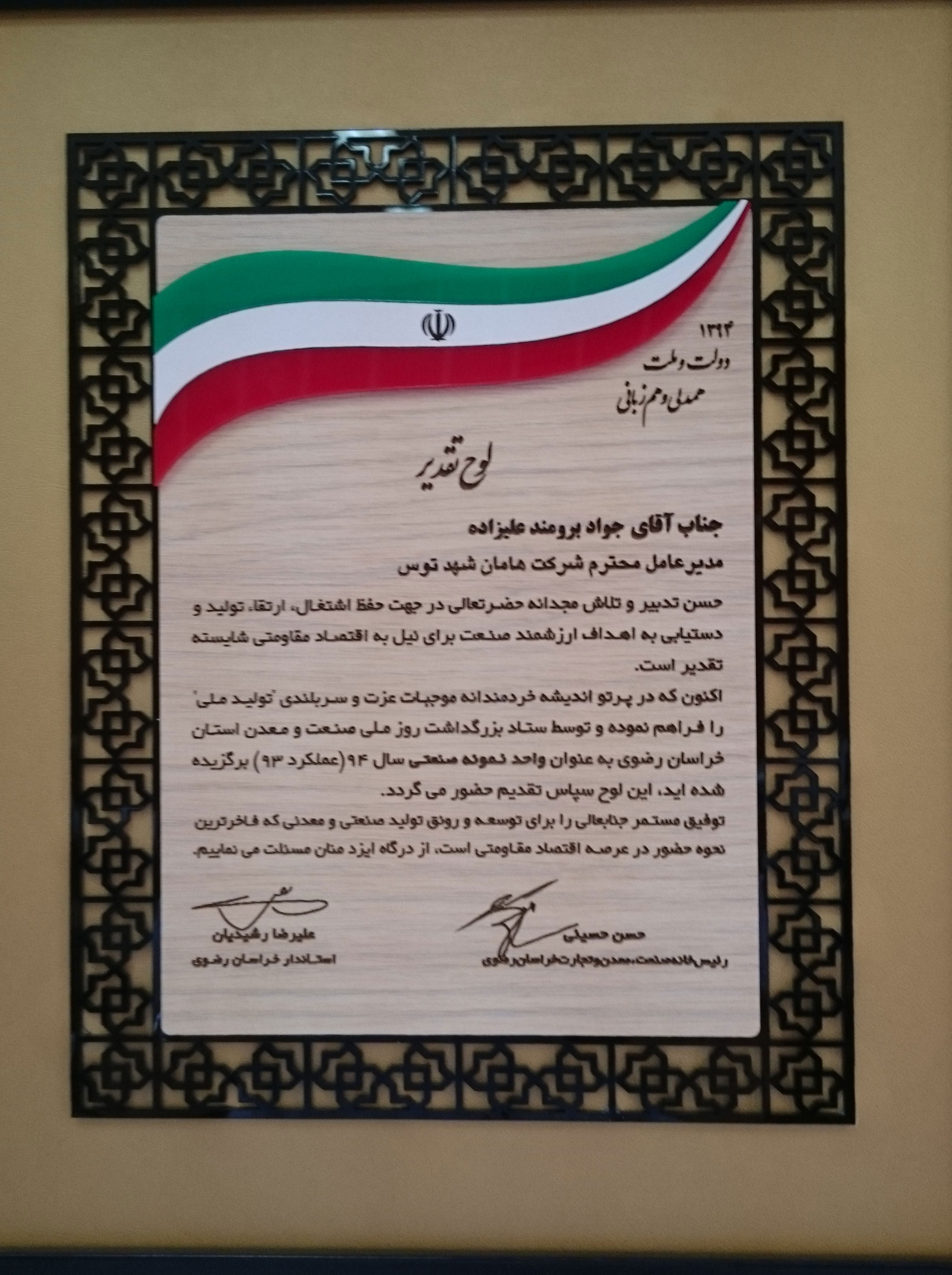 منطقه چناران تولید کننده بهترین محصولات گوجه فرنگی در کشور می باشد. به طوری که قطب تولید رب در کشور و آسیا بوده و بهترین کیفیت رب در کشورهای منطقه را دارد . شرکت هامان شهد توس جهت استفاده مطلوب از این محصول وارائه بهترین تولیدات در منطقه شهرک صنعتی چناران در زمینی به وسعت 15000 متر و با زیربنای 7000 مترمربع تاسیس گردید تا در کمترین زمان ممکن محصول گوجه فرنگی بعد از برداشت جهت تولید به کارخانه منتقل گردد. این شرکت با سرمایه گذاری کلان دارای آخرین متد و فن آوری در زمینه تولید رب گوجه فرنگی از کشور ایتالیا در منطقه خراسان رضوی می باشد و محصولات خود را با برند صادراتی (امیننت) تولید و در سرتا سر جهان عرضه می نماید و به دلیل تولید انبوه و کیفیت برتر واحد نمونه استان در سال 94 شناخته شد و لوح تقدیر دریافت داشت. این واحد از بزرگترین کارخانجات اختصاصی تولید رب با ظرفیت دریافت روزانه 1500تن گوجه فرنگی در کشور می باشد.